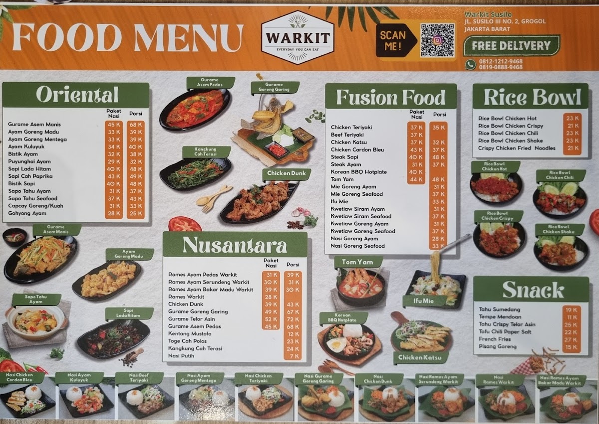 - Set or Combination Meals: Paket Tampah, Paket Nasi Ikan Asam Manis, and Paket Nasi Ayam Rica Rica provide complete meal options.
